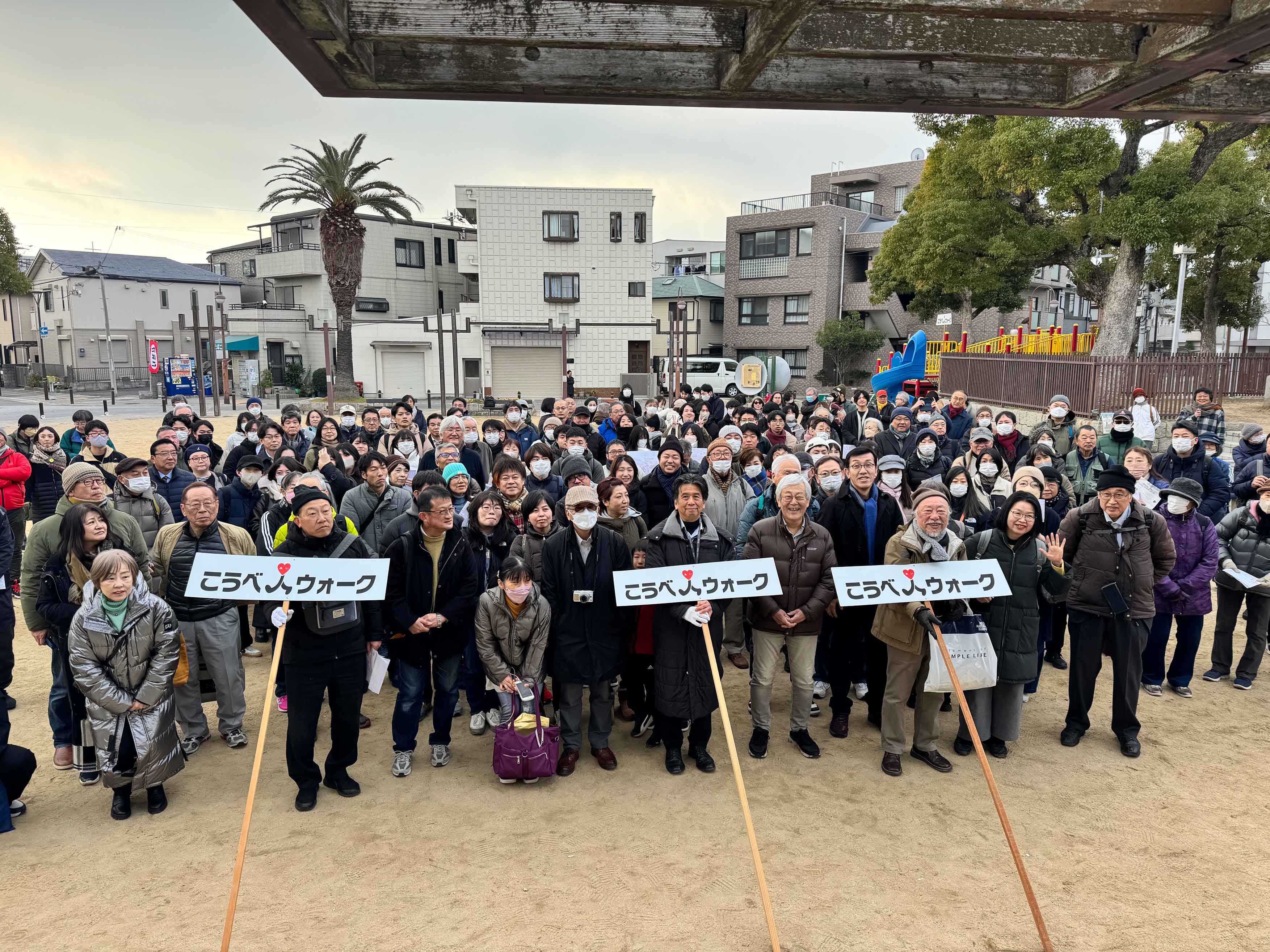 1999年に第1回こうべあいウォークを開催し、第3回まで大勢の方にご参加いただきました。その後も毎年欠かさず1月17日直近の日曜日に有志で続けてきました。10年目の2009年からは、少し広く呼びかけ16回で2,395人のご参加がありました。