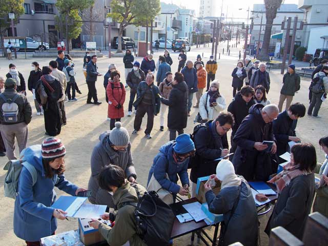 1999年に第1回こうべあいウォークを開催し、第3回まで大勢の方にご参加いただきました。その後も毎年欠かさず1月17日直近の日曜日に有志で続けてきました。10年目の2009年からは、少し広く呼びかけ17回で2,605人のご参加がありました。